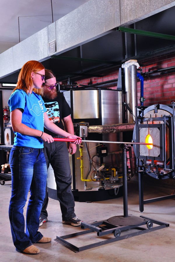 The collaborative nature of glassblowing is something many Central students and alumni appreciate about the art, including Roberts, who loves assisting his students as they become more proficient.